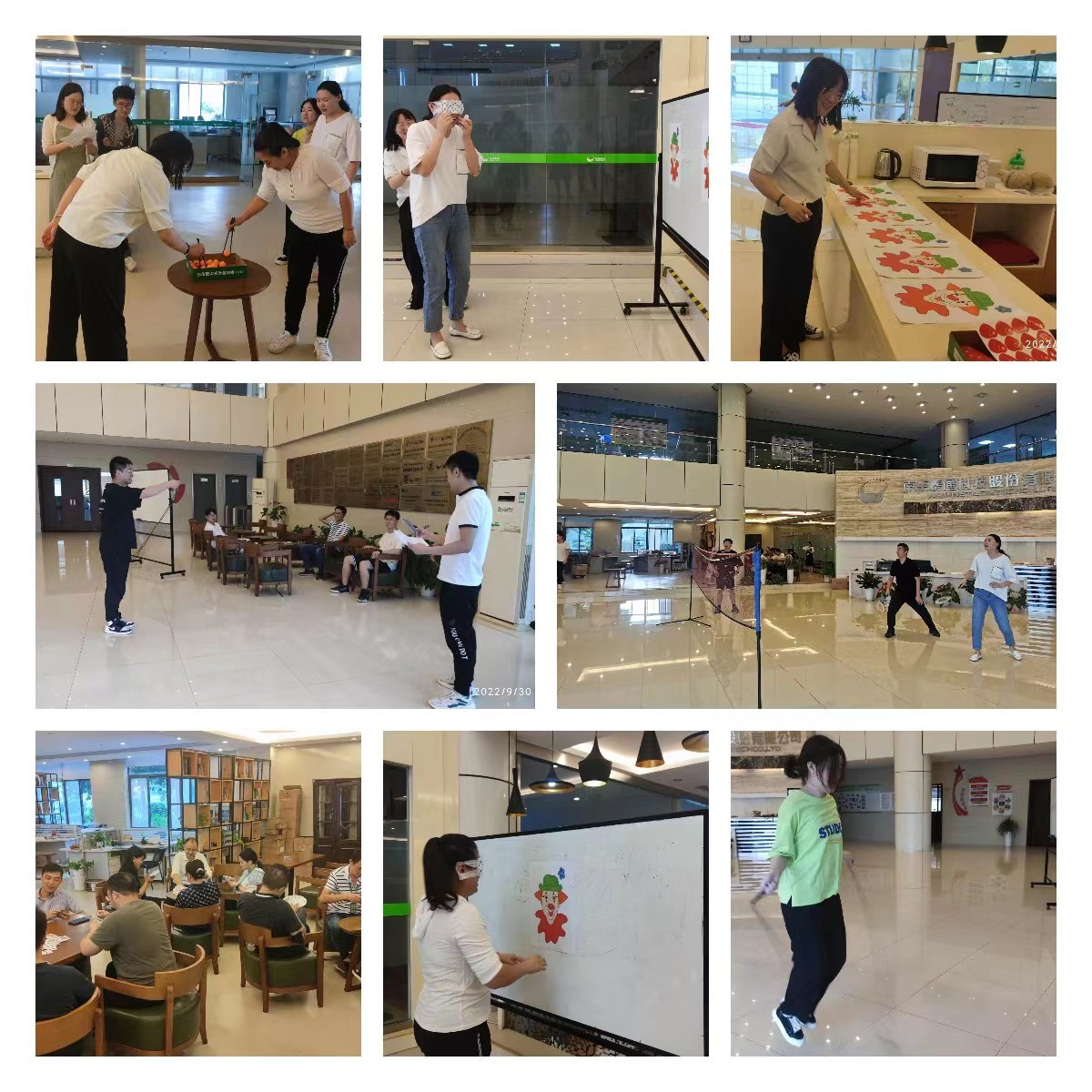 本次“迎国庆”活动共设有“文体活动”、“趣味游戏活动”、“智力游戏(掼蛋)”三个大项目,其中“文体活动”包含跳绳、羽毛球、夹乒乓球三个小活动,“趣味游戏活动”包含贴鼻子游戏。